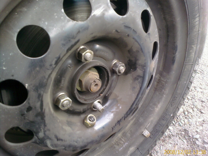 Cand am montat pneurile de iarna am descoperit ca 2 prezoane la roata fata stanga sunt uzate foarte rau, inclusiv piulitele, asa cum se vede in poza 1.