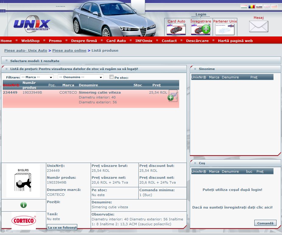Am nevoie de un simering de planetara, mai exact simeringul de la cutia de viteze pe unde iese planetara, la un Mondeo Tdci. Ca si in cazul altor masini, daca vreau sa comand acest simering la un magazin, tipul imi zice ca poate aduce pe original cu o suma (de obicei mare) sau pe producator daca-i spun dimensiunile. Presupun ca daca stie dimensiunile poate aduce de la Corteco. Mai am si banuiala ca el poate vedea in programul folosit la magazin care sunt aceste cote, sau macar o serie ceva...dar nu spune.
