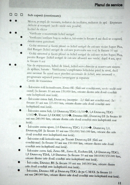 Despre cureaua agregate, manualul Ford spune altceva. Nu intru in polemica. In legatura cu inlocuirea placutelor de frana, parerea mi-a fost ceruta telefonic, nu eram la fata locului, am mizat pe probitate profesionala-am gresit; erau bune. Pustiul care mi-a facut lucrarea, pe banii mei, n-are cei sapte ani de-acasa.
