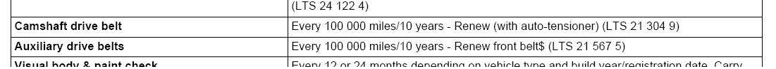 Atasez pagina din "Certificat de garantie si ghid de service", care insoteste masina de la cumparare, referitoare la "curele de transmisie". Cred ca nu mai e loc de comentarii pe tema asta.