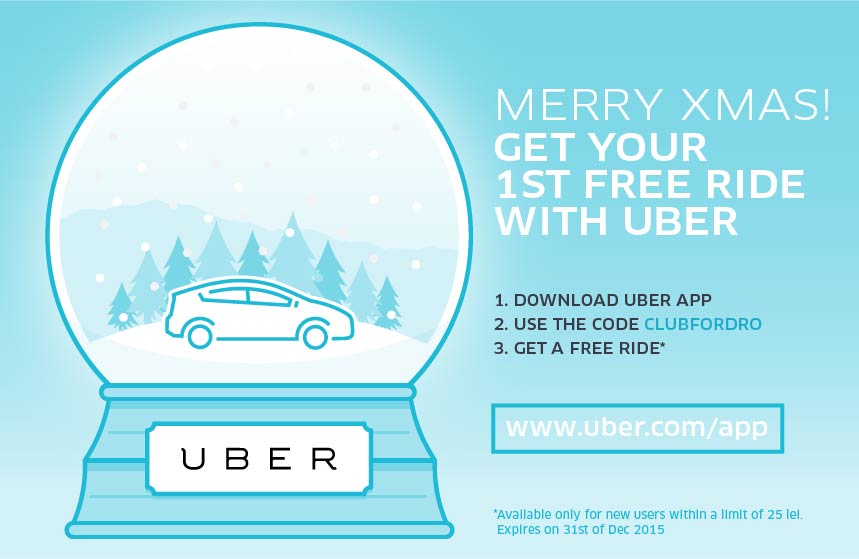 Am primit de la Uber un cadou pentru noii utilizatori ai aplicatiei. Astfel, Uber le ofera acestora o cursă gratuită in valoare de maxim 25lei. Tot ce trebuie sa faceti este sa folositi codul promotional CLUBFORDRO dupa ce instalati aplicatia.