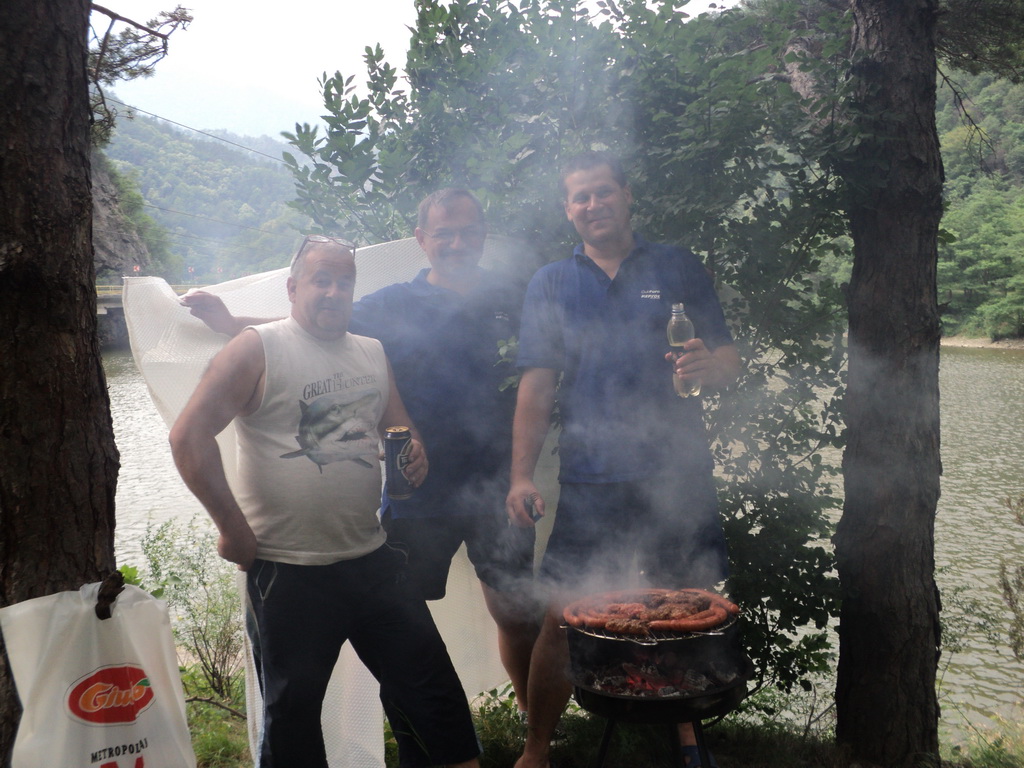 Nea Mircea era cu rechinii... el i-a adus cu el dupa ce i-a pescuit pe Olt, iar unul dintre ei a dorit sa il tragem in poza si sa-l imprimam pe tricoul pescarului.