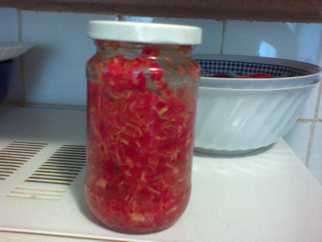 A promis mai demult pe topicul de pescuit ca o sa.mi aduca o zacusca de peste facuta dupa o reteta caracteristica zonei sale,fapt de care eu si uitasem,dar el nu.