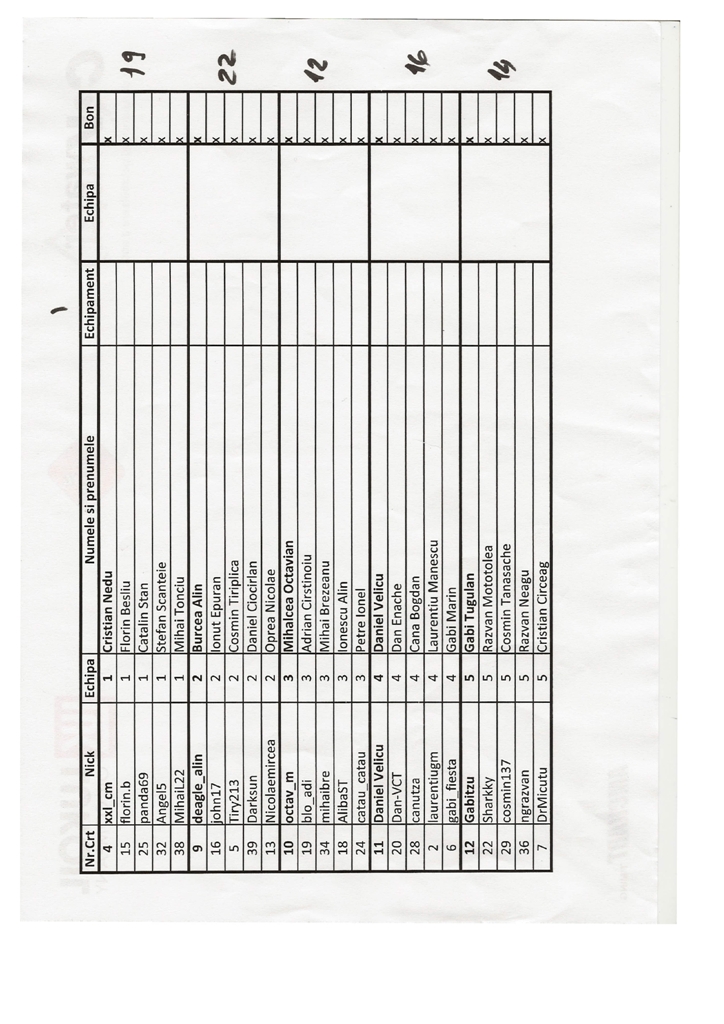 Nr. Inscriere Nickname Echipa