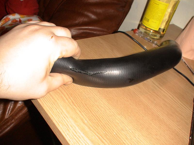Taiat furtunul si refacut cu cotul montat.