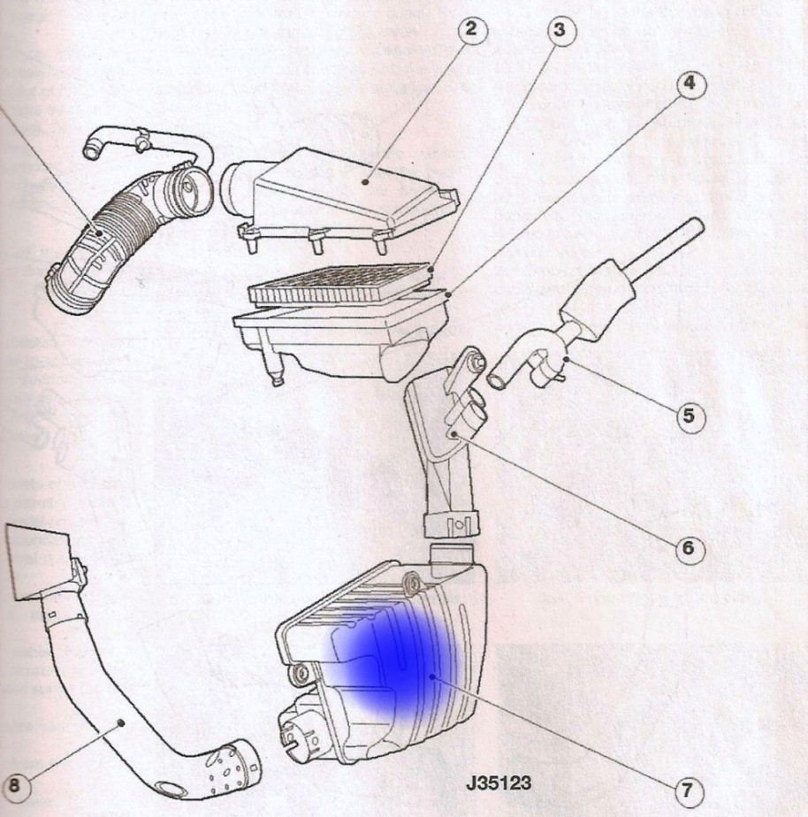 Pentru a putea remedia pagubele, as avea nevoie de protectia rotii (aripa de plastic, interioara) de pe partea stanga-fata, si cutia rezonatorului de aer ( se afla montata inainte de filtrul de aer - vezi foto, marcat cu albastru).