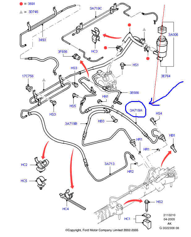 tajneste ulei de servo exact la imbinatea cuplei furtunului cu pompa de servo, m-am uitat destul de atent si sunt 2 pori in teava (3A719A) chiar inaintea cuplei filetate ( 3F656) din desenul tau.