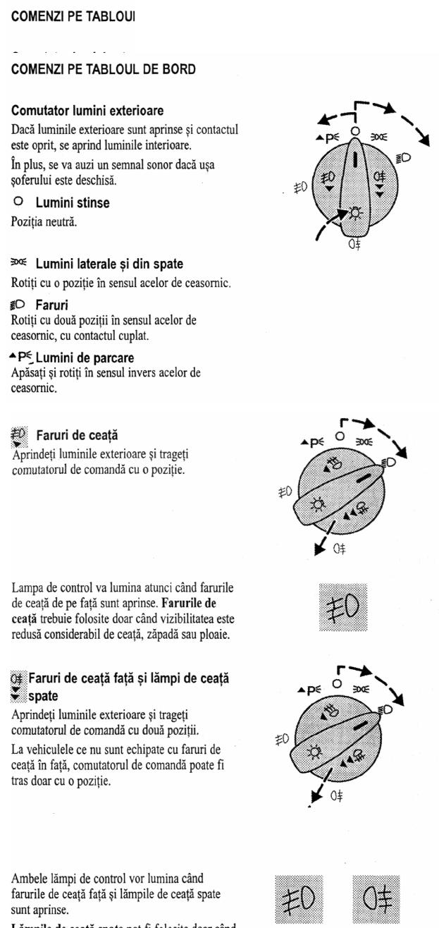 $1 scrie:$2u am la blocul de lumini o pozitie numai ptr proiectoare... adica in loc sa rotesc butonul spre dreapta ptr a aprinde lumina de pozitie sau de intalnire, pot sa il imping si apoi sa il rotesc spre stanga unde ar trebui sa se aprinda proiectoarele... daca nu a/ti inteles am sa incerc sa va explic altfel...