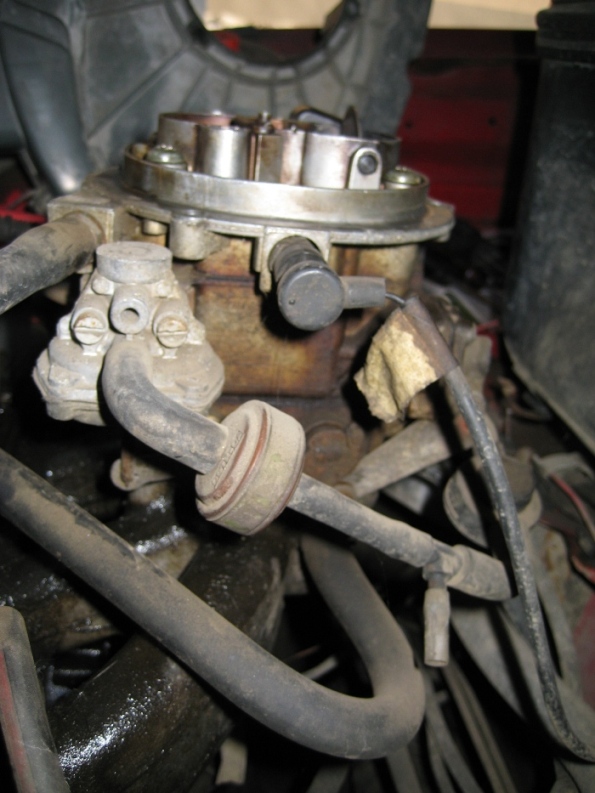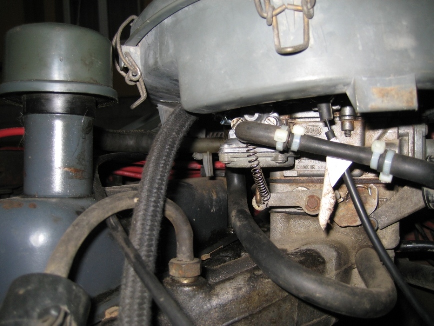 Am constat ca pe partea stanga a carbului (pe partea soferului) exista o pompa actionata vacuumatic ce actioneaza axul clapetei camerei secundare (cred) - a se vedea poza - pe un site am gasit-o numita "throttle kicker" . Membrana ei e ok, actioneaza ok daca sufli sau tragi aer. La ea vine un tub dinspre "talpa" carbului. Tubul avea pe traiectul lui un "T", conectat la atmosfera (??!!) si doua "spark arrestor"-uri - pe care le-am eliminat fiind infundate... cred. Daca este impinsa in sus tija actionata de pompa masina accelereaza frumos, chiar si la rece, dupa pornire. Momentan am incercat sa compensez lipsa actionarii pompei printr-un arc care mai trage de clapeta si mai amelioreaza simptomele la rece (altfel trebuie sa stau cam 10 min si acum vara ca sa se incalzeasca bine motorul). Aveti idee unde ar putea veni conectat un tub pe bifurcatia in "T"? La accelerare nu se simte vacuum pe tubul ce vine din "talpa" carbului.