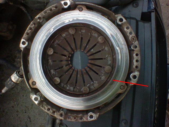 La demontarea ambreiajului am constatat ca se mersese ceva cu el peste limita de km admisa si din acest motiv discul de ambreiaj a ajuns la nituri si a permis acestora sa frece suprafata de contact a volantei,facand canale pe ea si invinetind-o de temperatura.
