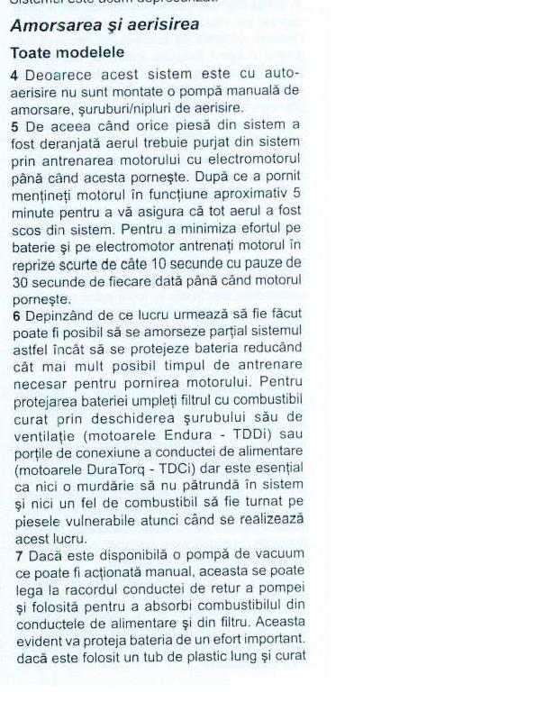 Eu va multumesc si va asigur ca nu procedez ca acei colegi. Este vorba doar de masina mea pe care as repara-o cu placere daca as avea cele necesare. Fara a bate cu pumnul in masa eu il voi convinge sa imi dea masina pornita. Omul are un atelier mecanic dotat sculele necesare. Desi ma cunosc destul de bine cu el, iar la mecanica este priceput, v-am cerut parerea pe forum pentru a fi si eu oarecum in tema, pentru a nu-i oferi posibilitatea "sa ma duca cu presul". Daca v-am lasat impresia ca "va trag de limba", imi cer scuze si totodata va asigur ca nu o sa va mai deranjez. Am atasat pagina din manual unde scrie faza cu datul la automat pentru amorsare. Oricum mecanicul a folosit tot o pompa, dar manuala. Inca odata va multumesc pentru toate raspunsurile, care mi-au fost de un real folos.
