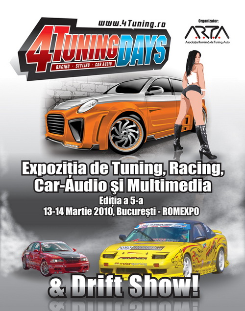 4TuningDAYS va reuni, de asemenea, cluburile pasionatilor de tuning din intreaga tara, elita artistilor de airbrush din Romania si hostesse lipsite de inhibitii, plus debutul primelor etape din Campionatul de Drift, Tuning si Car-Audio. Peste 30 de piloti isi vor disputa titlul de campioni ai primei etape de drift, restul cupelor urmand a fi impartite intre cei mai talentati tuneri de styling, performante si car-audio. Nu rata deschiderea sezonului 2010, alte 1000 de motive te asteapta la fata locului!