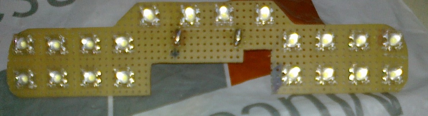 ma ajutat un prieten care e foarte iscusit, si am avut si multi gura-casca in jurul nostru si am gresit polaritatea ledurilor ca initial trebuiau sa se potriveasca fara nici o modificare placuta se fixa in locul becului, oricum costa cam 50-60 de lei toata combinatia poate si mai mult in functie de leduri.