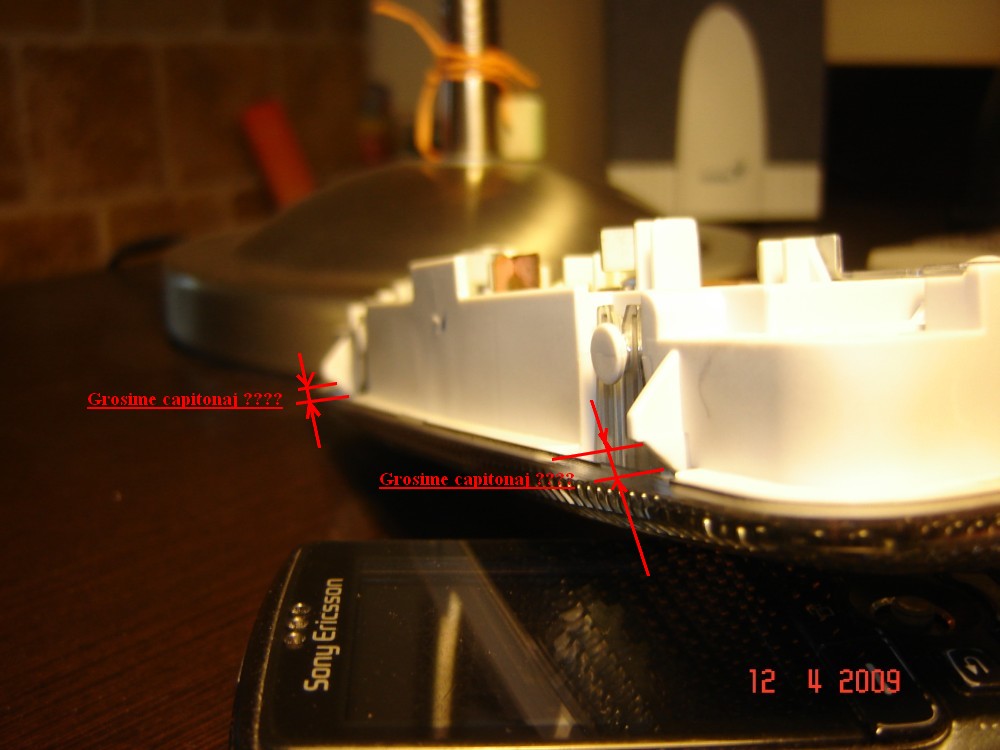 clema metalica am fortat-o in sus ... am ridicat-o in sus ... iar la dintisorii aia 2 de plastic cu o lama de ras incalzita la bricheta i-am mai modificat facand spatiul ala marcat de tine de aprox 4 mm (am mers cu lama paralel taind cam un mm - deci in poza- in loc de trapezul ala eu am facut exact un triunghi)...