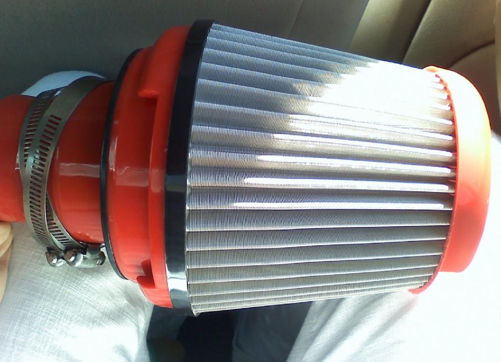 Iti duci filtrul undeva unde sa ajunga aerul rece la el. De exemplu undeva pe langa grila, si pe cat posibil sa il izolezi de caldura de la motor. uite aici un exemplu de ceva home made: