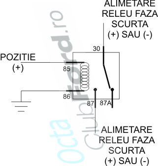 Pt. cei ce nu vor ca atunci cand dau flash sa se aprida si faza scurta (de exemplu cei ce au xenon pe faza scurta, pt. a proteja aceste becuri si blasterele lor), propun aceasta schema simpla in care se inseriaza in releu pe unul din cablurile de comanda a releului fazei scurte prezent pe masina.