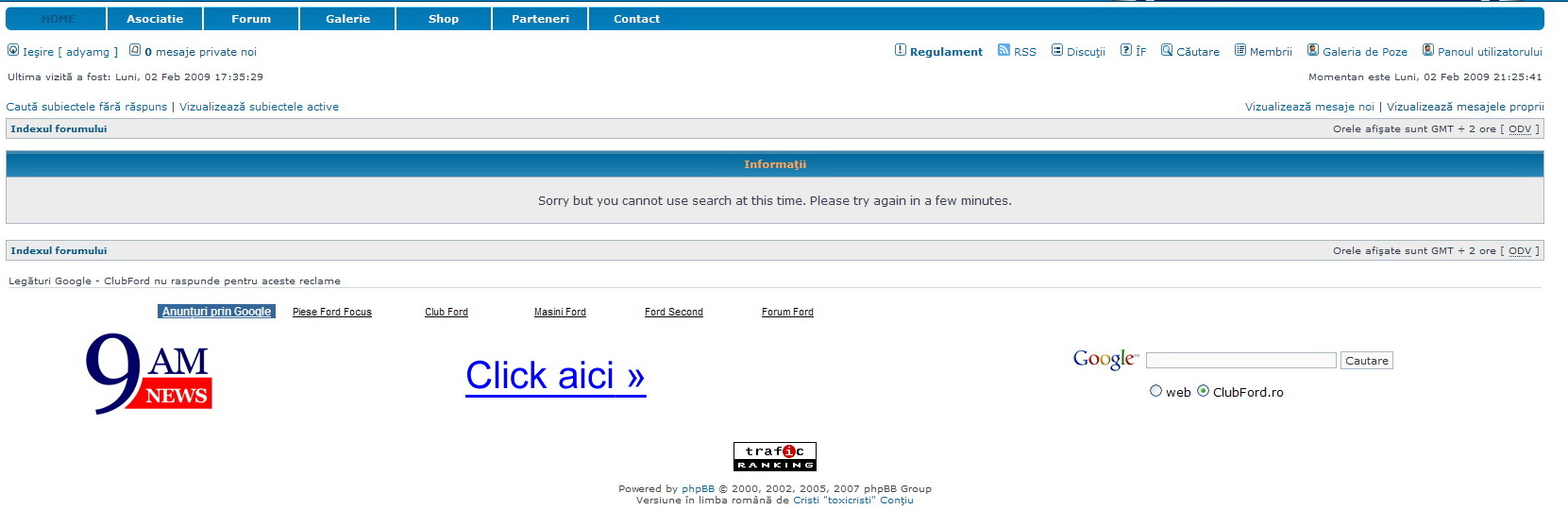@adyamg: Majoritatea scripturilor pentru forumuri (inclusiv phpBB) au un sistem inteligent de protectie pentru modulul de "search". Astfel, in momentul in care serverul este incarcat (sau daca incerci sa efectuezi prea multe cautari intr-un timp f. scurt) modulul de cautare este oprit temporar. Uneori modulul de cautare poate fi oprit automat (si temporar) pentru un singur utilizator.