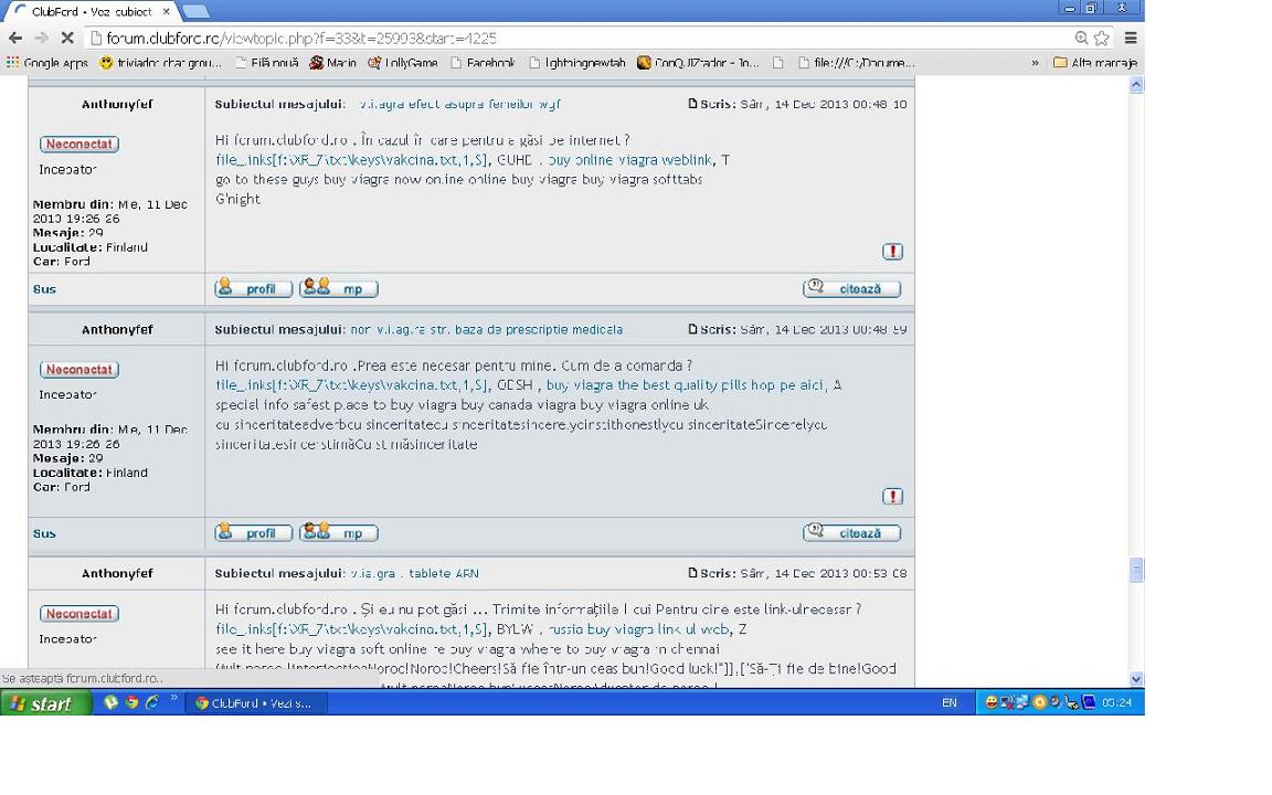 viewtopic.php?f=33&t=93867 Azi-noapte forumul era practic invadat de vanzatorii de viagra... sau mai stiu eu ce vindeau ei pe acolo...