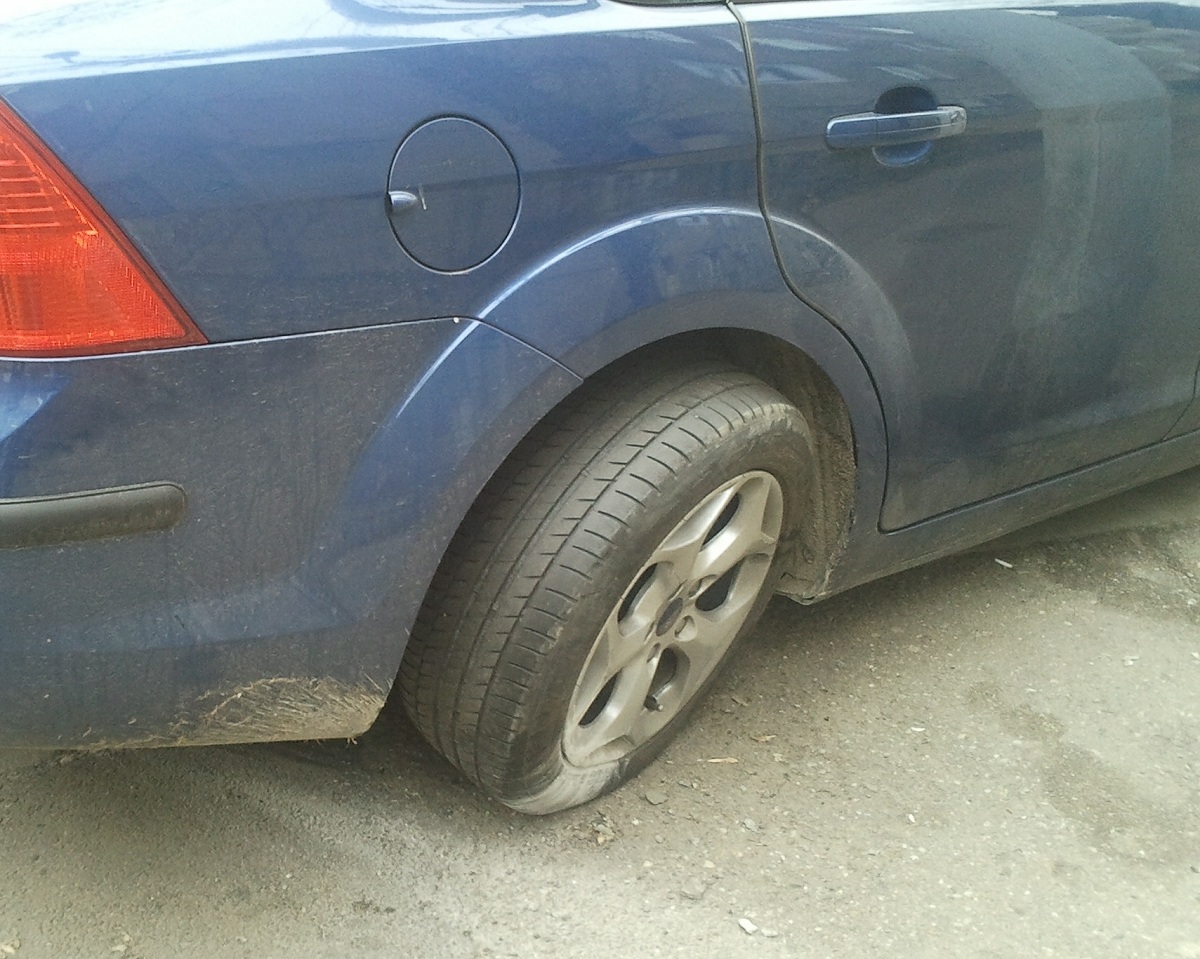 In proces, printre alte daune, roata dreapta spate a fost aproape rupta, masina fiind lovita de bordura, dupa cum se vede si din poza atasata.