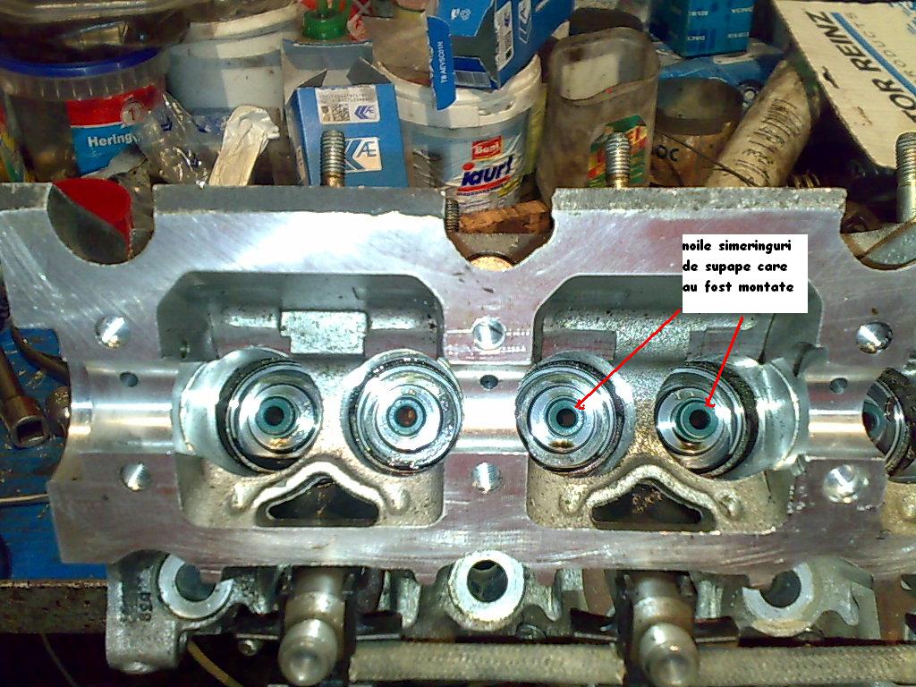 Deci ma repet,puneti vaselina pe toate suruburile,inclusiv pe cele care prind capacele la distributie,alternator,tampon,etc,iar singurele unde nu veti da cu vaselina vor fi cele 2 suruburi care fixeaza pinioanele de la distributie cu axele cu came intrucat sunt facute fara cap si nu mai sunt prevazute cu canal de pana ca sa se blocheze frumos pinionul ci acesta sta numai in forta de strangere a surubului si am vazut destule sarite si indoite supapele intrucat umblati acolo si nu le strangeti la cuplul care trebuie.