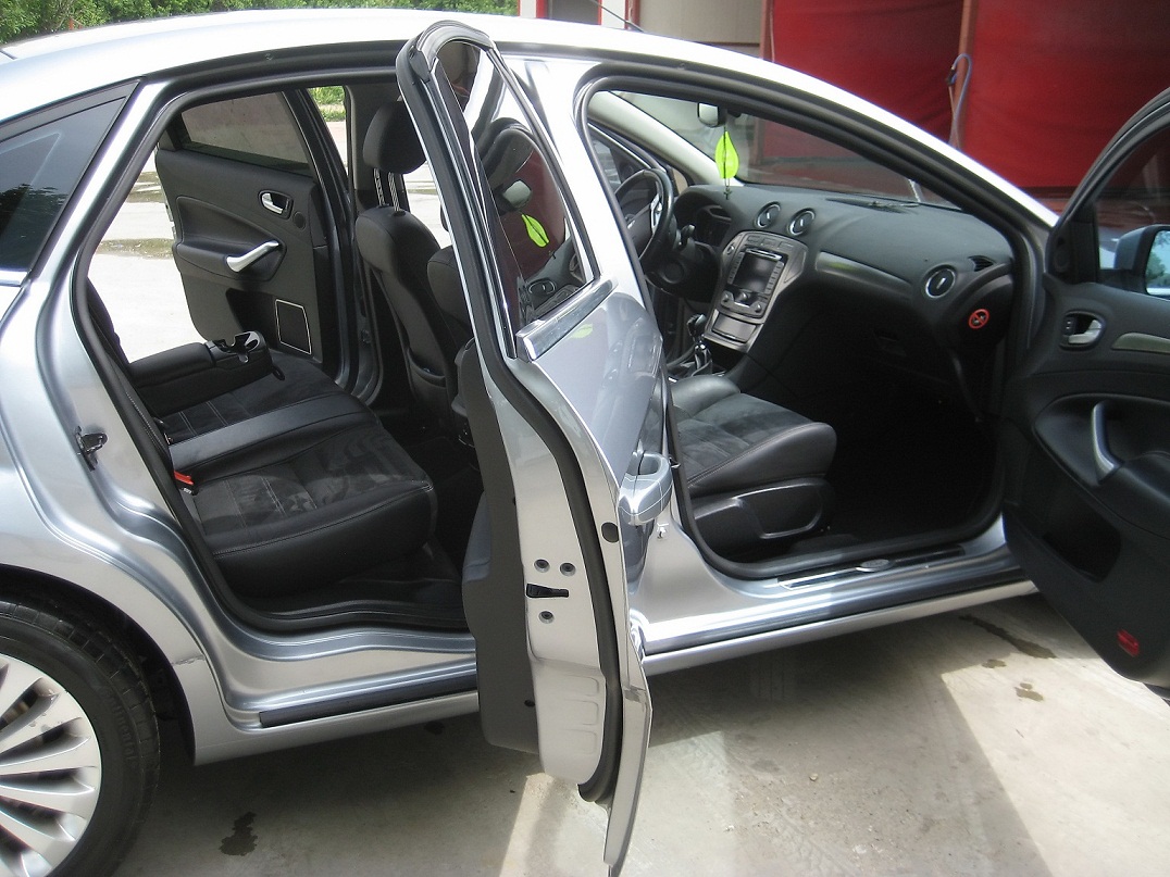 Au trecut deja 2 ani aproape de cand mi-am achizitionat un Mondeo Mk4 2.5T Titanium X si acum are 82k km. Este o masina la care inca unii viseaza si pe care eu (spre norocul meu) o detin. Pana mai zilele trecute eram decis sa o dau pt ca vroiam ceva mai mic CA DIMENSIUNE pt oras. Motorul nu este o problema si vreau sa se inteleaga bine de la inceput ca nu mi se pare greu de intretinut desi impozitul pe an este 915ron (cu cei 10% minus daca se plateste tot) si desi consumul este intre 12.5-14% mixt pt ca nu stau in Bucuresti ci la periferie. Cred ca daca as fi locuit in Bucuresti, altele ar fi fost deciziile mele :) . Sa revenim: Masina a fost cumparata de la Colina Popesti Leordeni deoarece am ramas indragostit de ea iremediabil din mom in care m-am urcat in ea si am facut un test drive. Are o multime de optionale printre care enumar doar cateva : Piele alcantara, scaune incalzite, parbriz cu degivrare, faruri adaptive cu corner light, navi mare, dublu climatronic, oglinda heliomata si nu in ultimul rand cea mai tare optionala, o instalatie de gpl zenit pro.