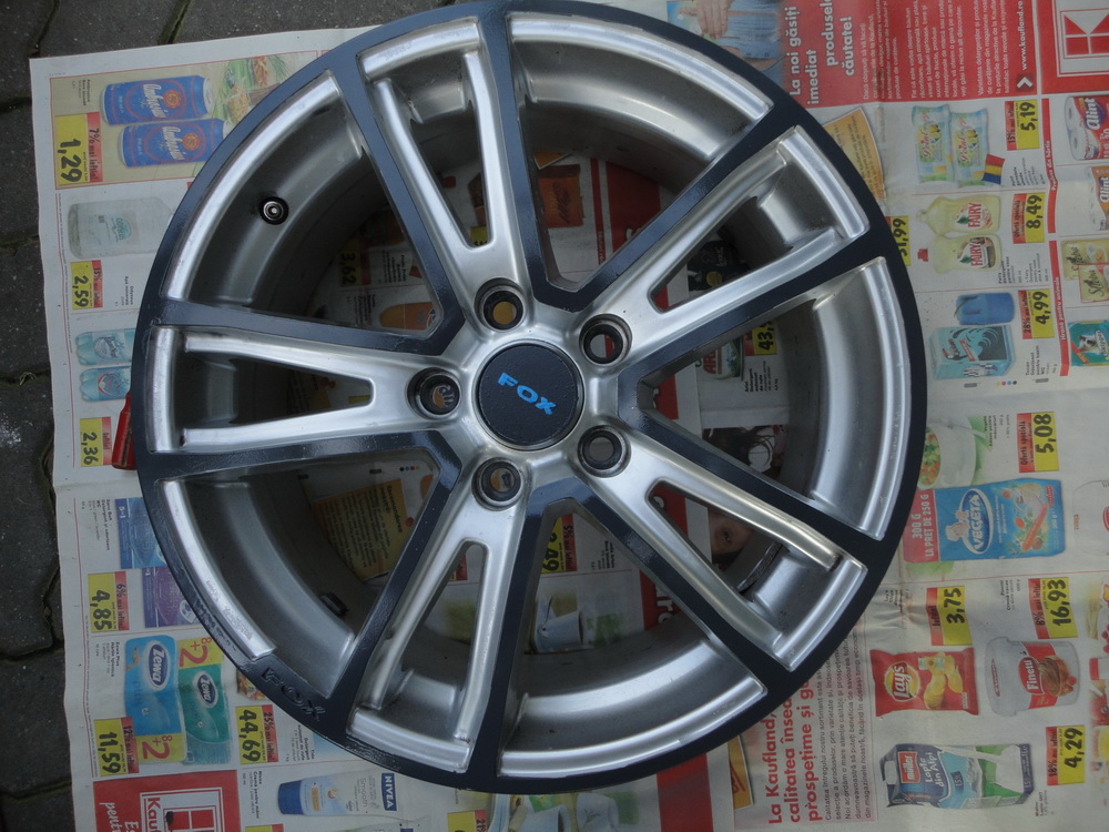 Pentru ca aveam deja jante de aliaj originale Ford pe masina, m-am hotarat sa gasesc niste jante mai ieftine pentru iarna. Am gasit unele tot de aliaj, dar sunt patate partial. Partea afectata este marginea jantei (cam 2 cm latime), 8 spite subtiri (tot cam 2 cm latime) si capacelele din centrul jantelor.