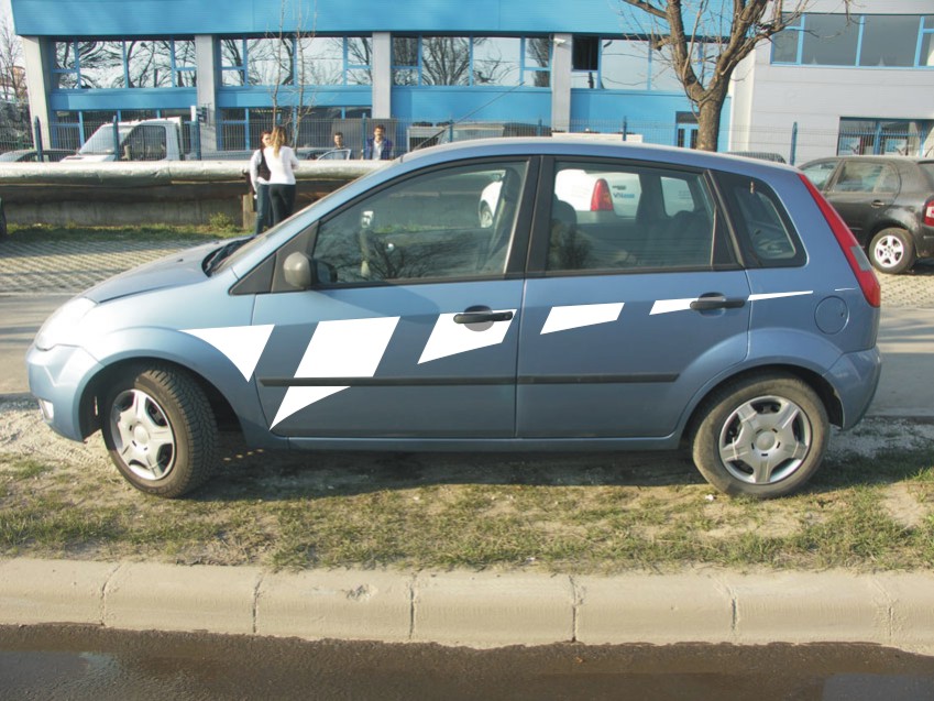 La o spalare facuta de "je", masinii mele i s-a exfoliat vopseaua pe o suprafata de cca 4cm patrati pe mijlocul usii soferului. Se vedea ca dracu: o pata alba, relativ ovala, cu un motz intr-o parte, inclinata la 30 de grade, pe o usa de culoare albastru metalizat. Cand am auzit ca vopsirea ma costa minim 4-4,5 milioane, am creat din autocolant un model si am lipit autocolant, astfel incat sa protejez zona de rugina. Cost: zero. Am atasat pozele ca sa vezi cum arata inainte "buba" si cum arata masina dupa colare (este poza pe care am facut simularea de colare, dar arata exact ca in imagine).