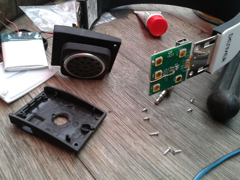 E ceea ce a rămas după ce am înlăturat căștile. Respectiv placa cu butoanele de volum, on/off etc. Și cealaltă jumătate e cu acumulatorul.