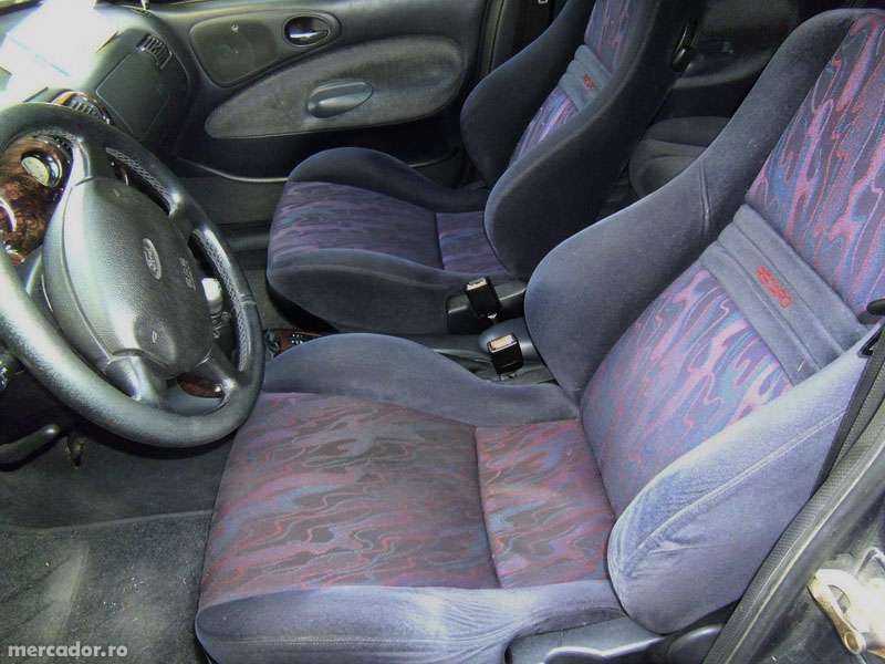 Masina prezinta urme de rugina la caroserie - praguri partea spate - de asteptat pentru varsta ei (pragurile noi sunt 100 lei impreuna stanga-dreapta).Usa stanga spate este zgariata si infundata de mai mult timp (gasita in parcare). Recent am gasit-o in parcare cu bara fata sparta, se vede in poza.(o bara sh e intre 100-150 lei si noua de la 170 lei ). Vopseaua prezinta mici zgarieturi pe ici colo, nimic deosebit. Am schimbat de curand la ea bujii,filtru aer, filtru benzina, pompa benzina. Necesita schimb de ulei + filtru.