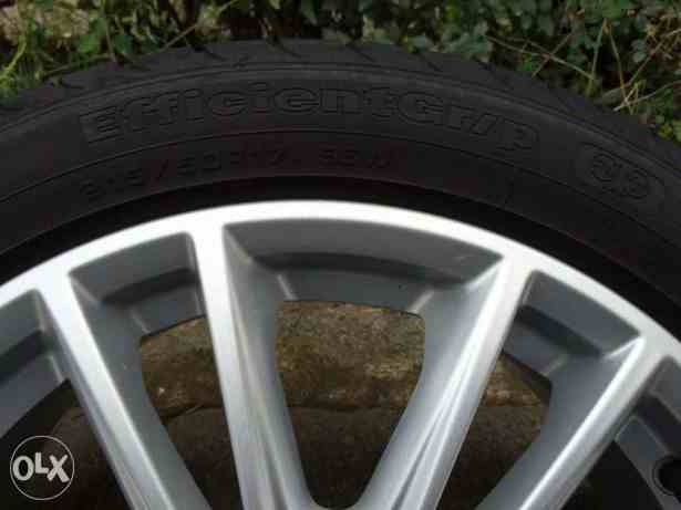 Produs original Ford (provin de pe un Mondeo MK4 - model foarte rar), folosit, in stare foarte buna. Jantele au prindere 5x108, 7Jx17H2 si sunt echipate cu anvelope de vara Goodyear 215/50/17 fabricatie saptamana 44 din 2010. Anvelopele sunt toate 4 la fel si au profil 6 mm din 8 cat au din fabrica.