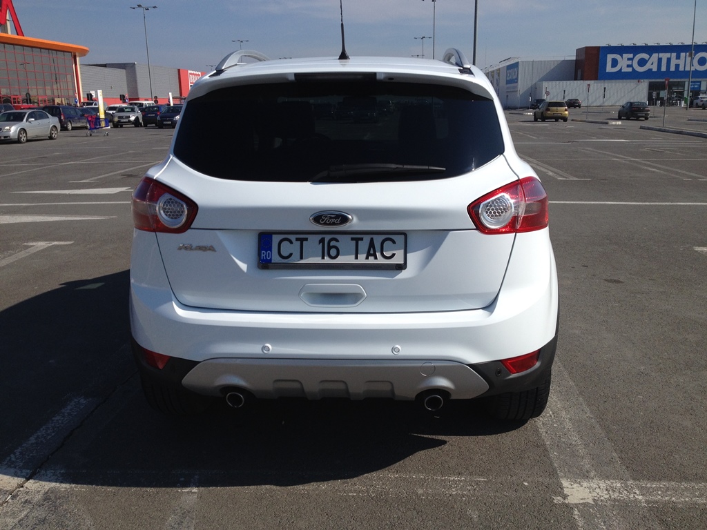 Este vorba de un Kuga fabricat in 09.2011, la momentul achizitiei cu 36456 km la bord, masina de serviciu a directorului de vanzari de la Tiriac Constanta. Ca si echipare, in acte e trecuta Titanium X, dar pe hayon apare doar Kuga. Dotarile sunt: