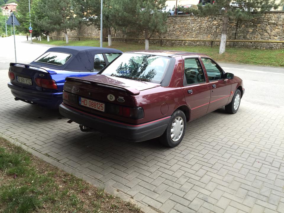 Prima tinta, masina. Am cautat un Ford Sierra sedan, 2.0 OHC. Aceste motoare au blocul comun cu variantele Cosworth 4x2, variantele Cosworth 4x4 avand un bloc motor (denumit 200) mai intarit. Eu voi construi un hibrid, avand transmisia 4x4, blocul 205 si componente interne si externe specifice 4x4 (carcasa termostat, pistoane si chiulasa). Ideal ar fi fost ca masina sa aiba culoarea Magenta Red si sa aiba trapa. Spre fericirea mea, am gasit masina ideala: un Ford Sierra 2.0i OHC, Magenta Red, cu trapa. Pretul? 1380lei