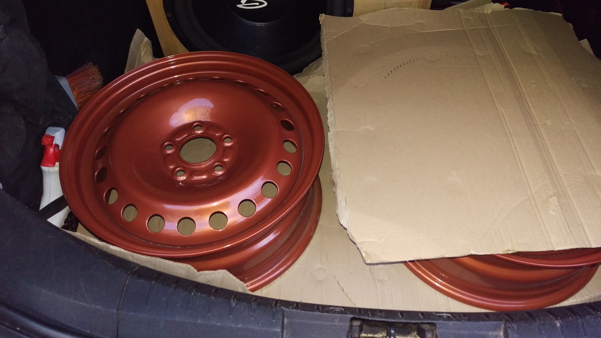 Ieri am luat si jantele de vara de la vopsit, tot TopWheels m-au ajutat de data asta insa o alta culoare, care zic eu, va rezista mai mult pe jante.