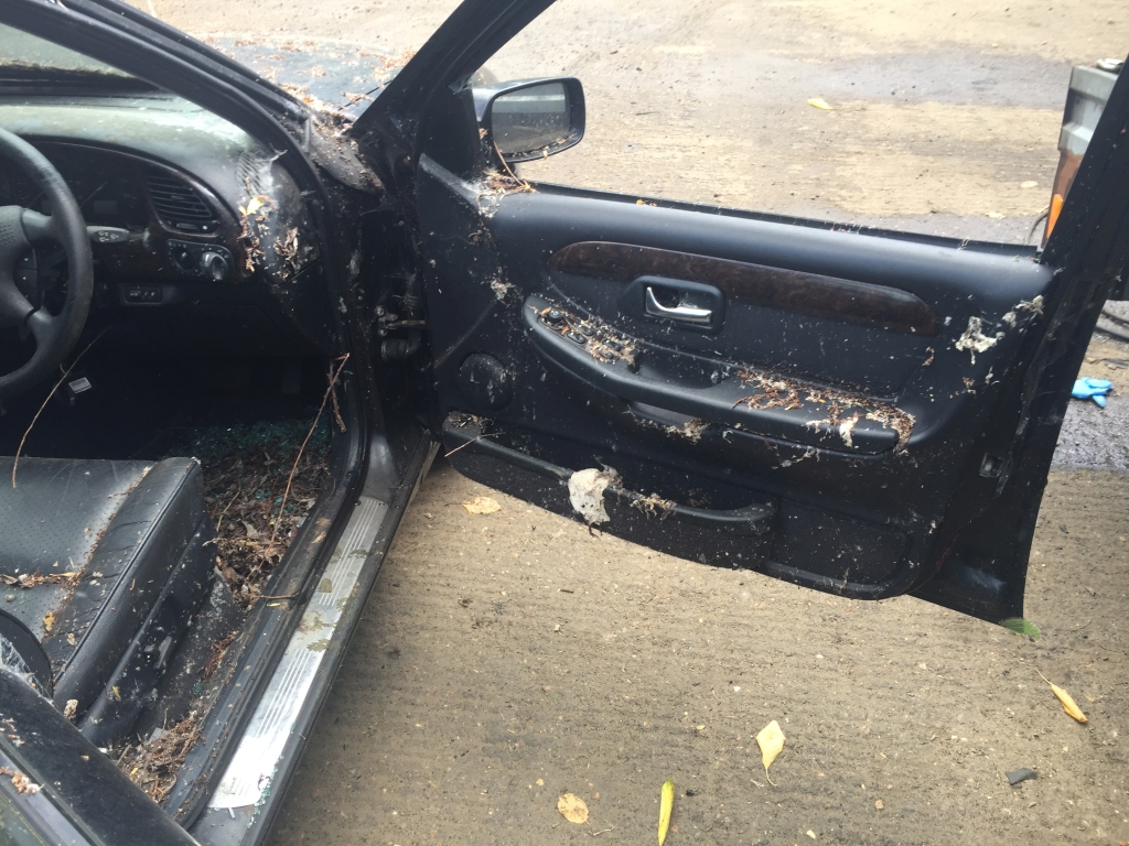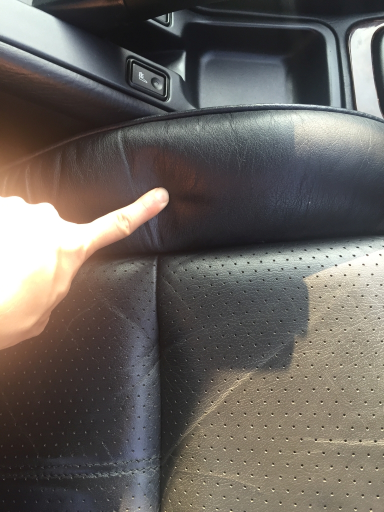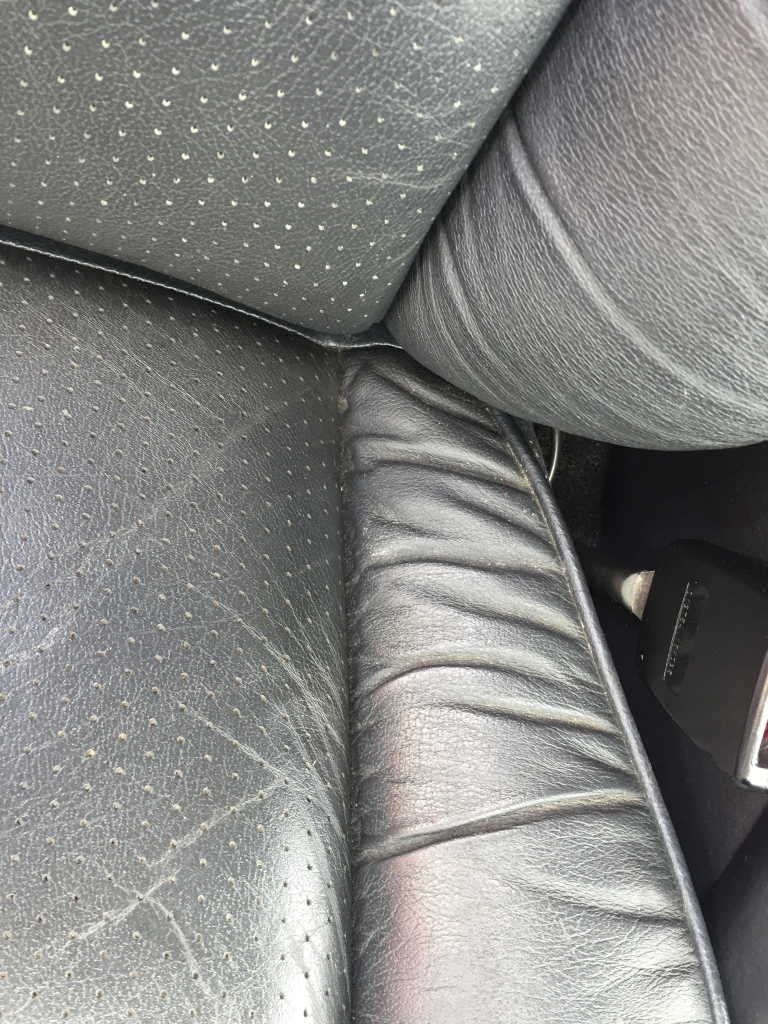 Câteva poze înainte. Pielea era curățată superficial, dar mai avea pete pe alocuri si era scorțoasă/rigida. Scaunul șoferului era cel mai afectat, stand mult timp fara geam, direct in bataia ploii și a soarelui.