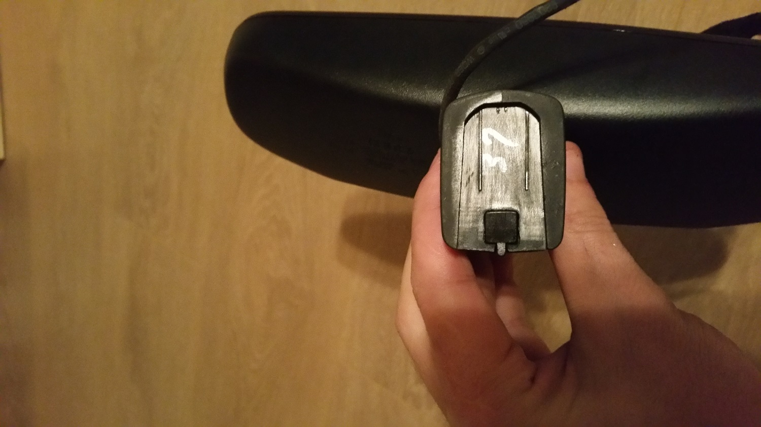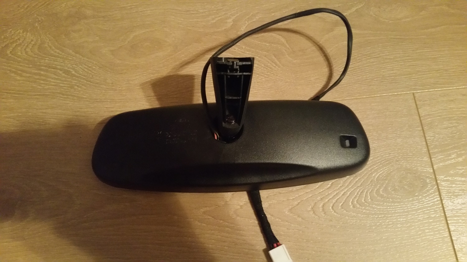 Conectorul alb este mufa pentru conexiunile electrice. Oglinda are 2 senzori de lumina(fotodione): cel din spate(spre parbriz) este pentru lumina exterioara, iar cel din fata este pentru lumina provenita de la faza lunga a soferului din spate. Senzorii determina "intunecarea" oglinzii, pentru un confort sporit.