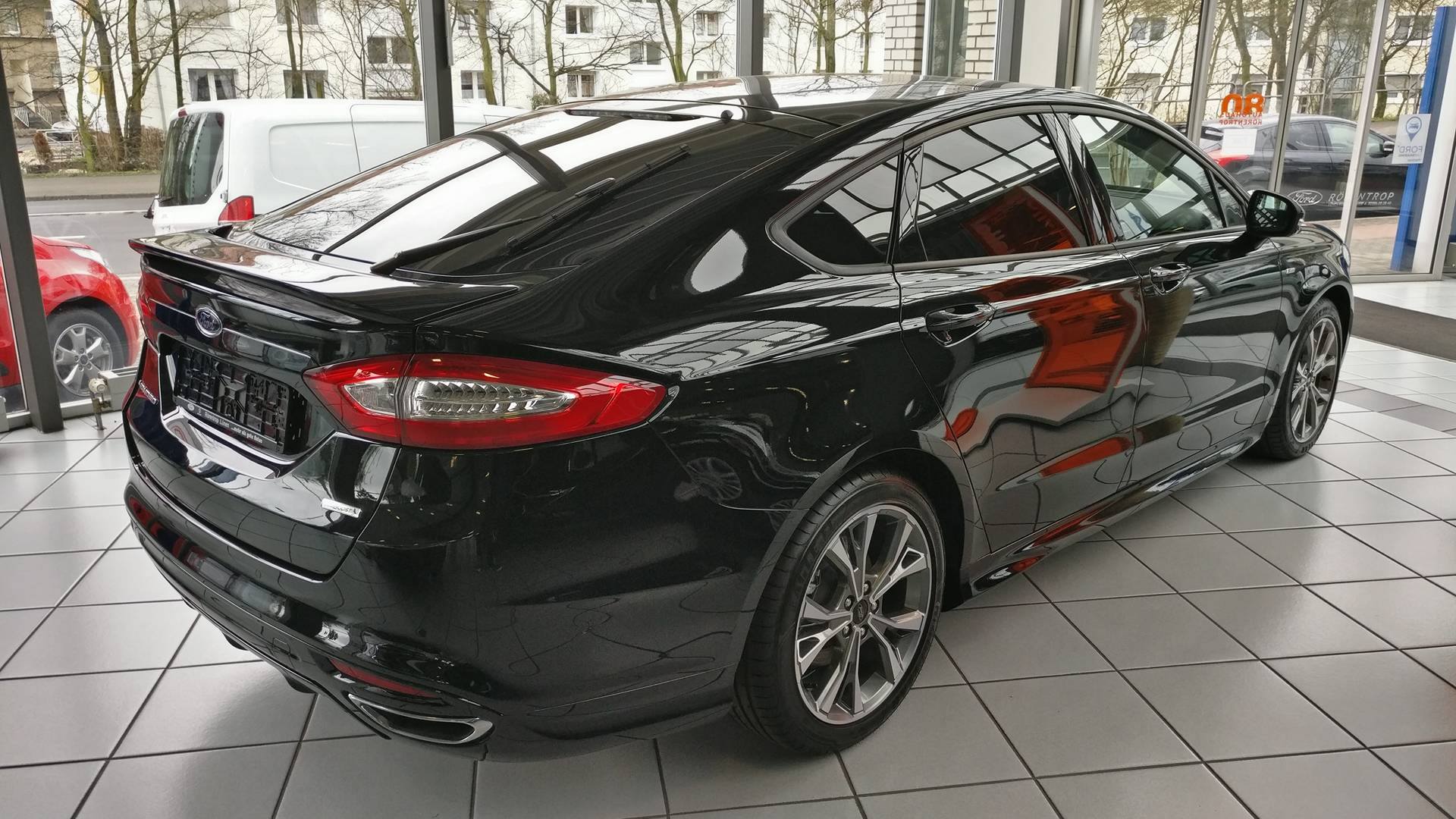 De ceva vreme cochetam cu ideea unui EcoBoost, si in urma cu 4 saptamani am inceput sa ma uit orientativ dupa Mondeo MK5 Titanium noi. Printre cautari s-au amestecat si cateva ST Line care mi-au atras atentia si m-a facut sa duc marea cautare spre 2.0 EcoBoost cu pachet estetic (fie Titanium + estetic, fie ST Line). Dupa o saptamana lista a ajuns la 5 bucati. Unele Titanium, altele ST Line. Unele cu faruri LED, eleron si jante simpatice, altele cu mici gadget-uri in plus dar fara faruri LED, jante sau alte cateva elemente de design. Astfel, am ajuns intamplator in urma cu 2 sambete doar sa vedem un Mondeo MK5 ST Line superb in zona Dortmund. Avand si plafon panoramic, care era un MUST pe lista sotiei, nu am reusit sa mai ajungem sa le vedem si pe celelalte de pe lista chiar daca erau cu ceva dotari in plus (dar care nu prezentau interes pentru ea). Avand in vedere ca i-a placut foarte mult sotiei si avea o mare parte a dotarilor de pe lista mea, in ziua in care am mers sa vedem masina dealerul ne-a facut o oferta foarte buna de finantare asa ca am si facut actele pentru ea.