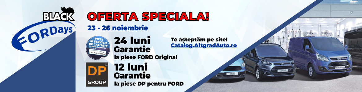 http://WWW.Catalog.AltgradAuto.ro Aducem in prin plan pentru aceste zile de reduceri discounturi mai mari, ce pot fi cumparate online in 12 rate fara dobanda, gama completa Ford life style collection ceasuri, sapci, tricouri, scule Ford dedicate noii game din portofoliu Ford, si desigur piese originale Ford si accesorii. Anul acesta vom avea mai multe produse cu pret semnalizat ... promo’’ care pot fi piese de larg interes cum sunt volante, ambreiaje, injectoare, pompe injectie, jante aliaj, roti complete de iarna. Oferim pe langa pretul foarte bun la piesele de Ford si aftermarket DP extradiscount care se aplica pe cosul de cumparatori de maxim 20 %.