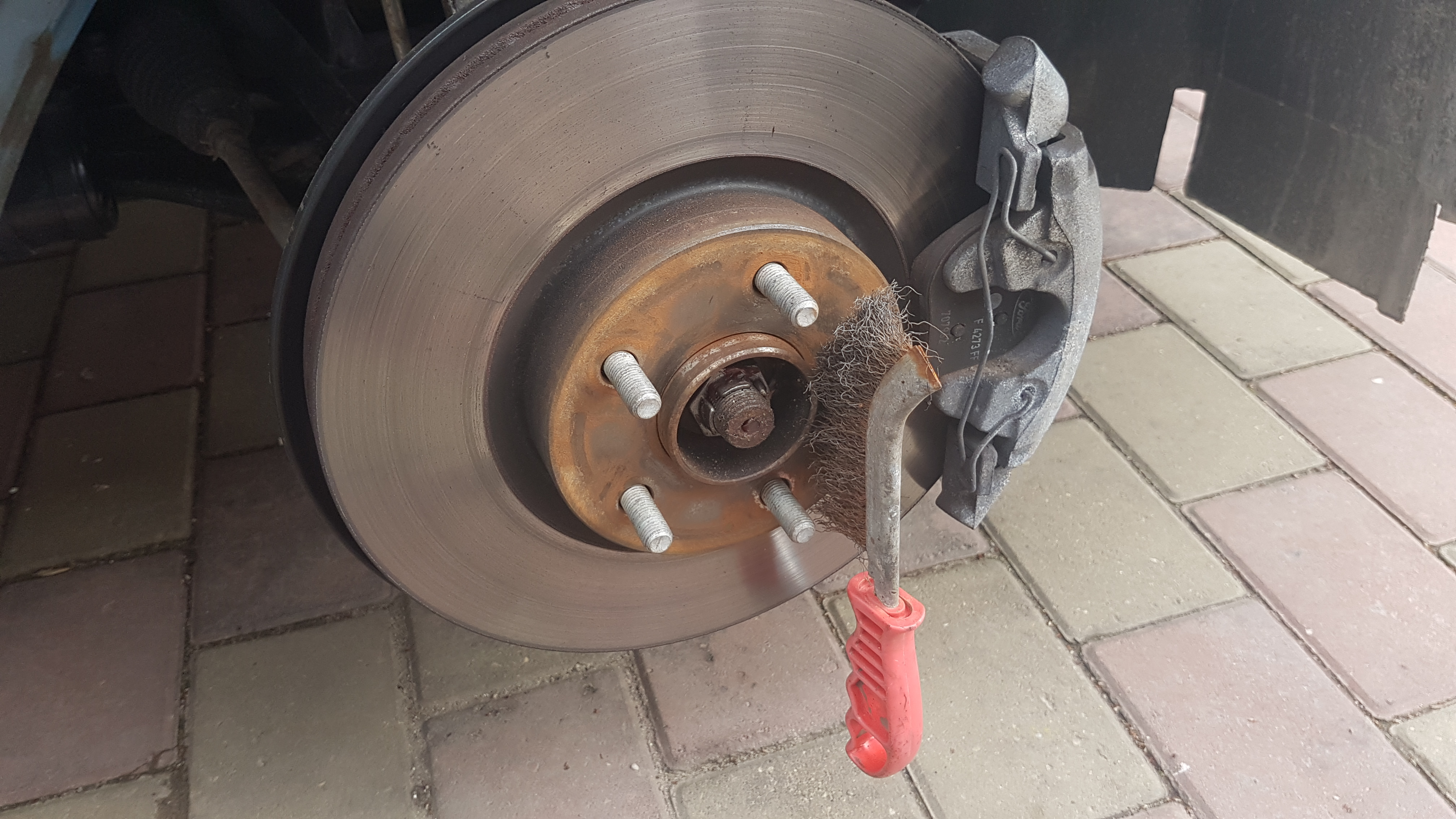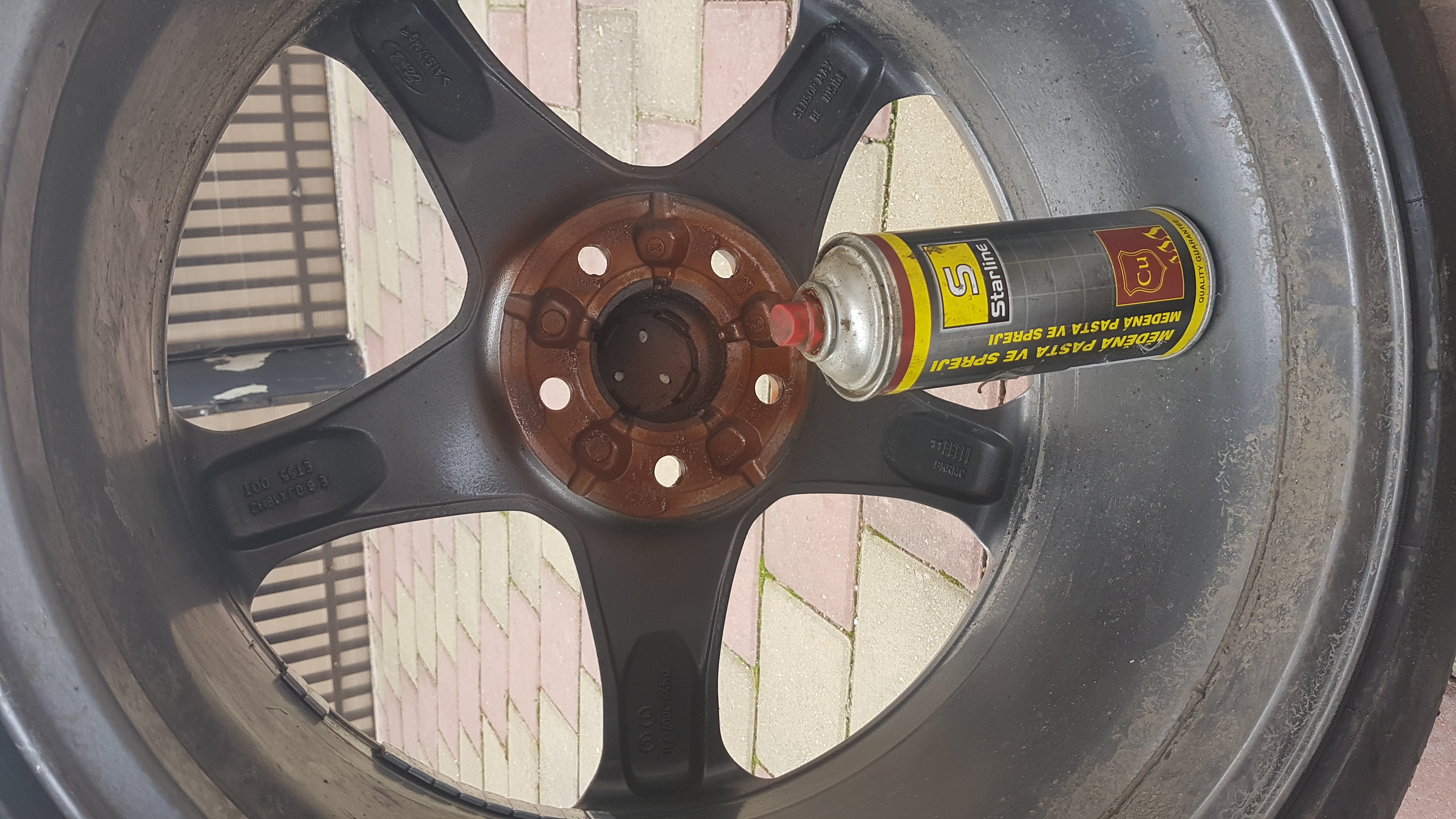 Eu folosesc spray cu vaselina cuprata, rezistenta pana la 1000 grade, atat la culisele etrierelor, cat si pe butuc! Nu am avut probleme niciodata cu blocatul rotilor, dar am intalnit cazul asta la alte masini!