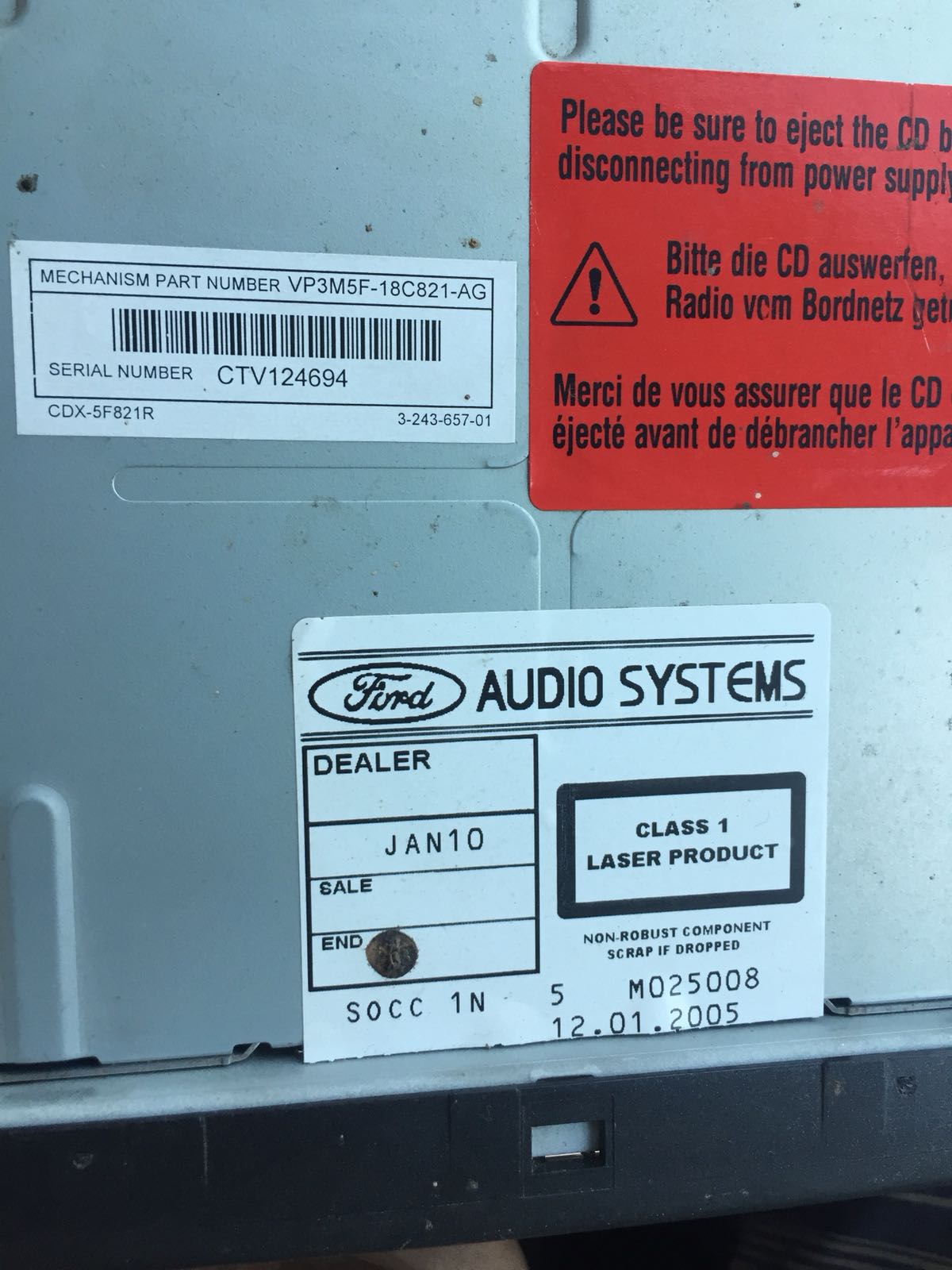 $1 scrie:$2a poate cineva ajuta cu un cod de deblocare pentru Sony CD 132 ..part number VP7S7F-18C821-DA....serial number CZH064504.....M070547