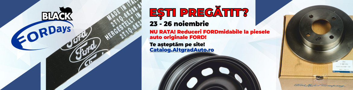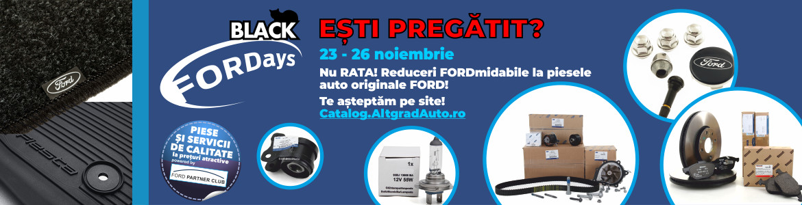 Esti pregatit pentru Black FORDays la piese auto Ford? Intre 23 - 26 Noiembrie ai reduceri FORDmidabile la piese auto Ford la un pret avantajos regasim accesorii Ford, covorase, jante aliaj Ford, consumabile Ford Motorcraft, set distributie Ford FoMoCo, ulei original Ford, piese auto originale Ford FoMoCo. Nu ratati ofertele! Te asteptam pe aplicatie online