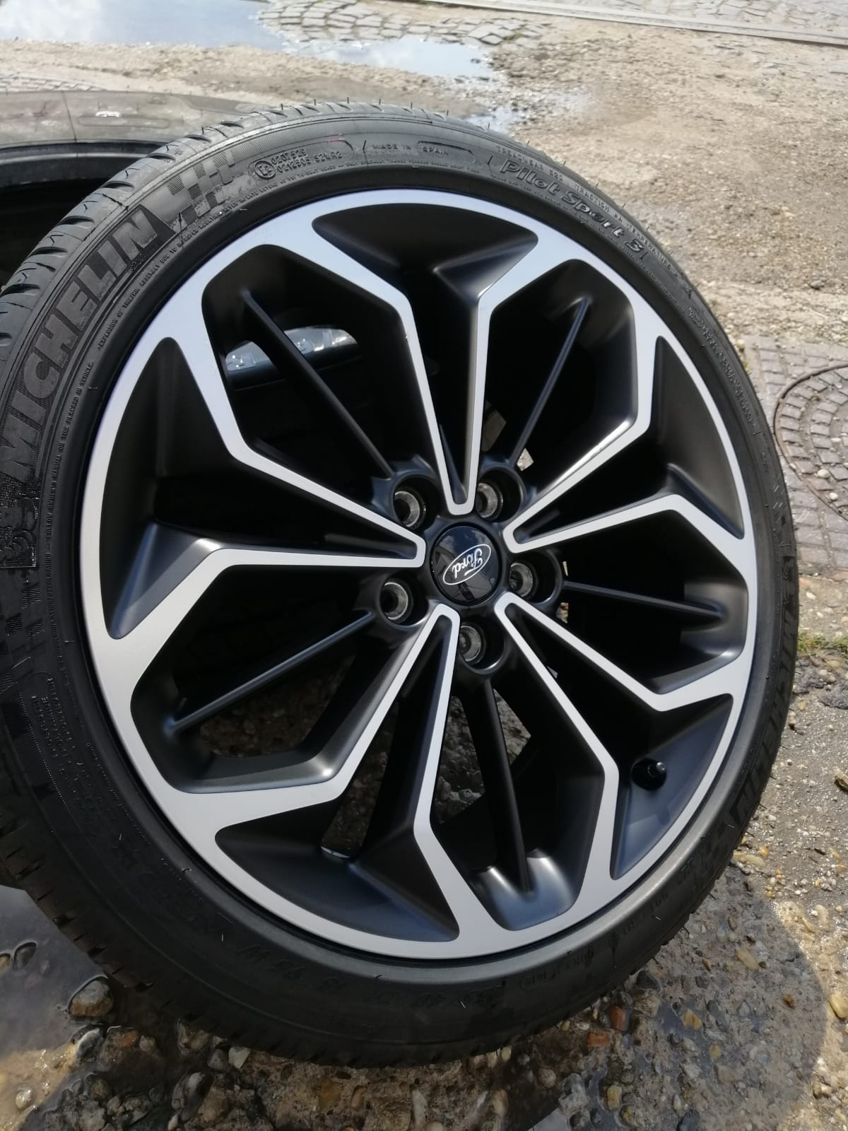 Set 3(3 poze) Jante 18" + bonus anvelope noi Michelin 235/45/R18 pret 850euro setul, pret jante magazin 1100euro.