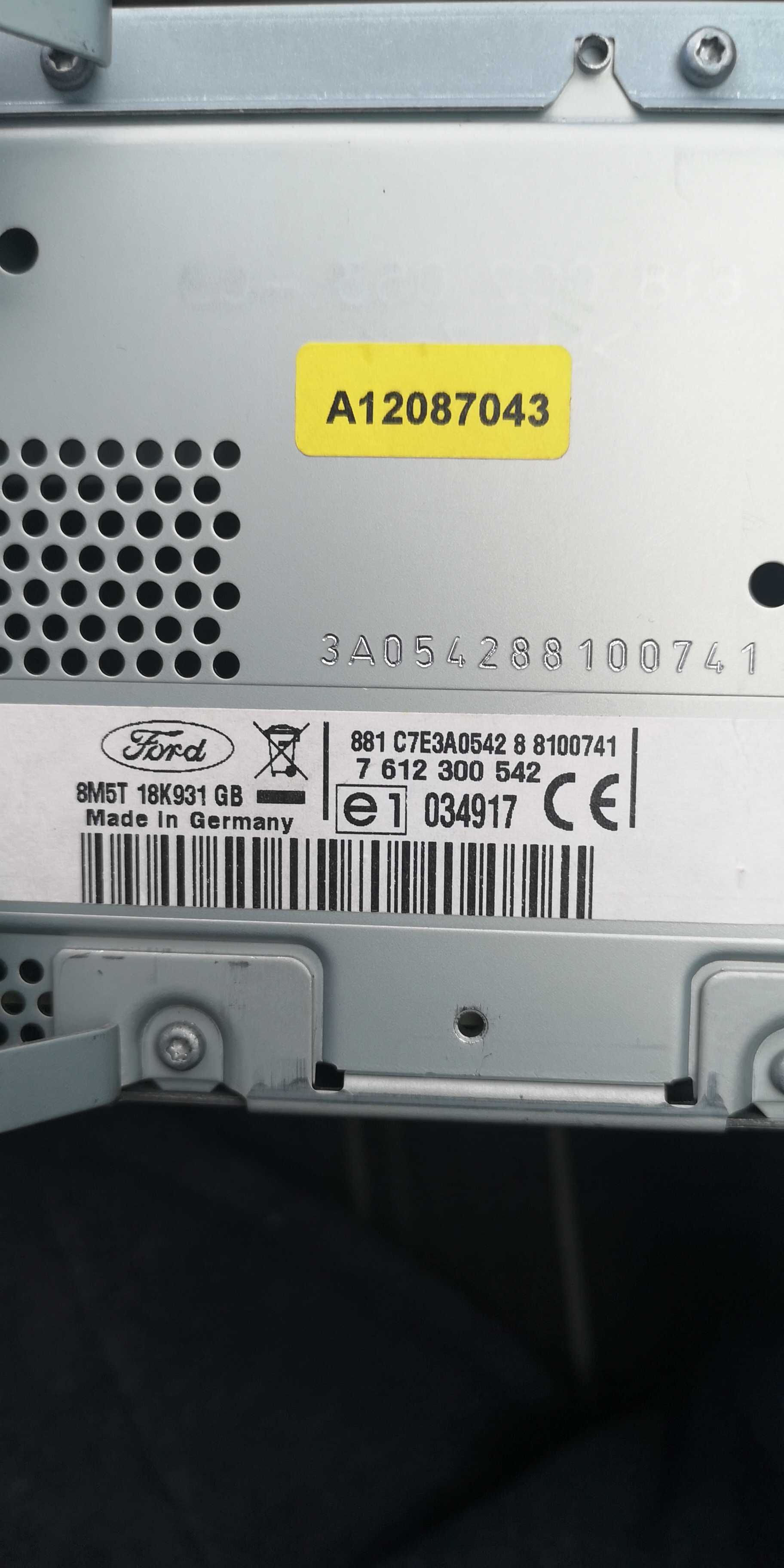 Buna seara ma poate ajuta cineva va rog am un cd player blackpunkt pe ford focus 2 2008 si lam deconectat si imi cere codul pin seria ce imi arata pe el este asa.815 C7E3FO547A3233796 nr 7612330547 9M5T18K931 DA