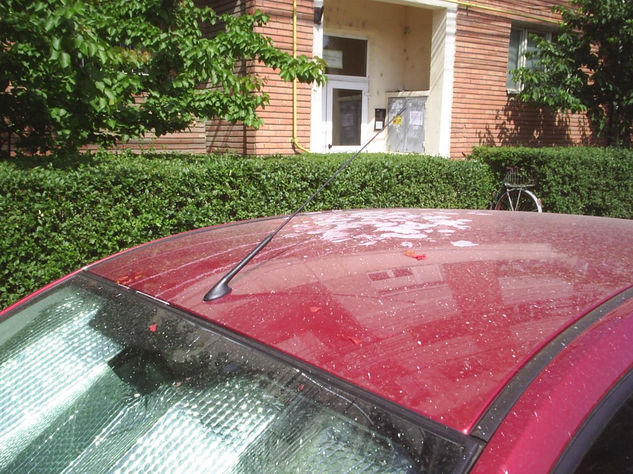 Da' vecinu' n-are masina? Ca poate sa pateasca si el pe la 3 noaptea acelasi lucru ...Sau daca n-are masina, in mod sigur are usa la apartament (care merge cu vopsea sau cu .. dejectii).