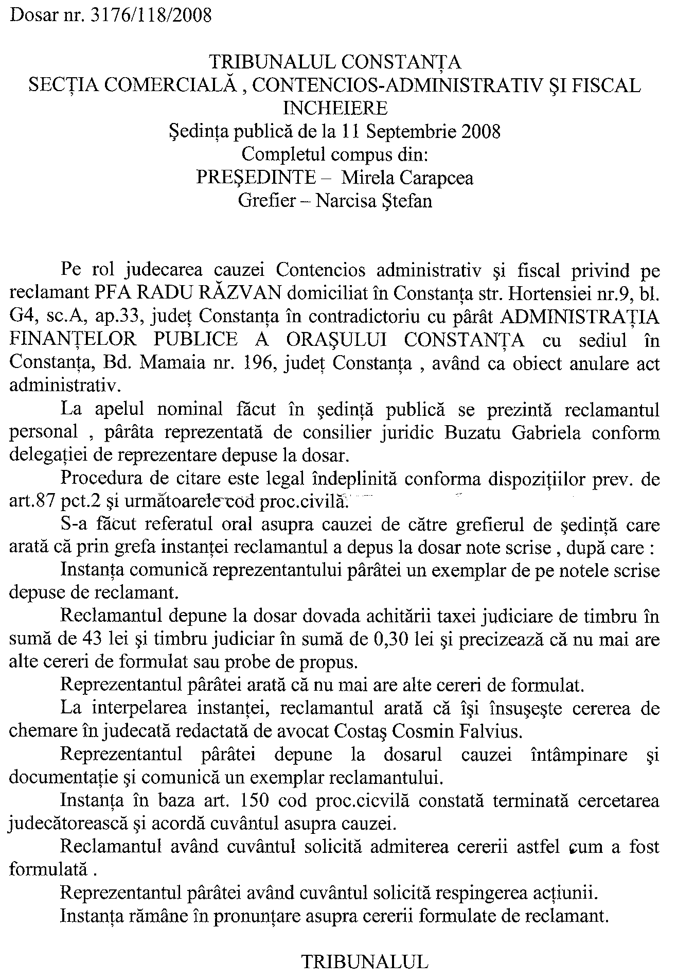 La mine s-a amanat 1,5 luni pt ca tribunalul a considerat ca trebuie sa aduca la proces si RAAPPS si Directia Judeteana de Finante, asa ca maine e ultimul termen pentru ei.