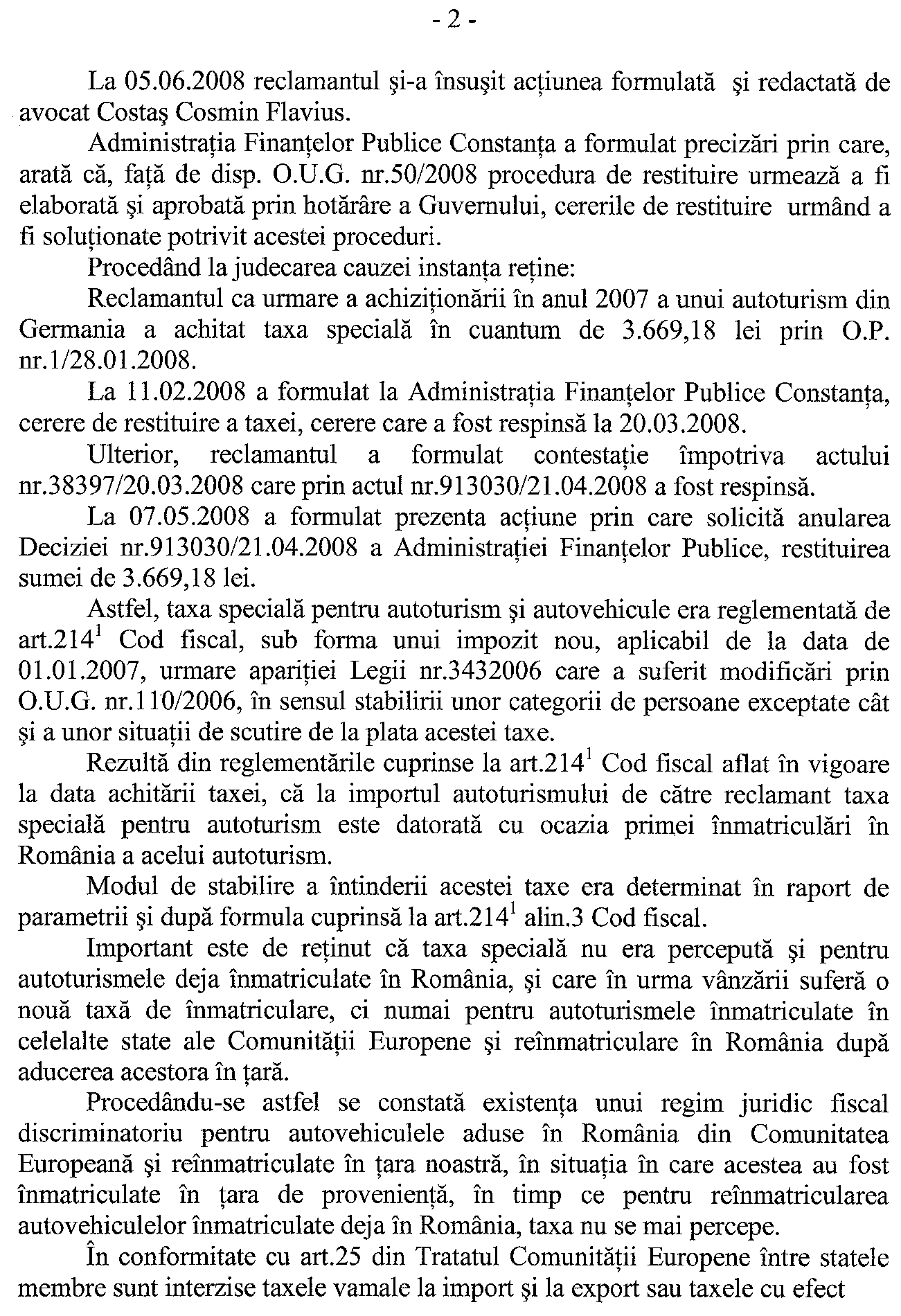 Iata si decizia instantei. Cum nu sint chior la pagina 4 scrie clar ca OUG 50 2008 ar trebui sa intre in vigoare la 1 Ianuarie 2009 cum era si normal.