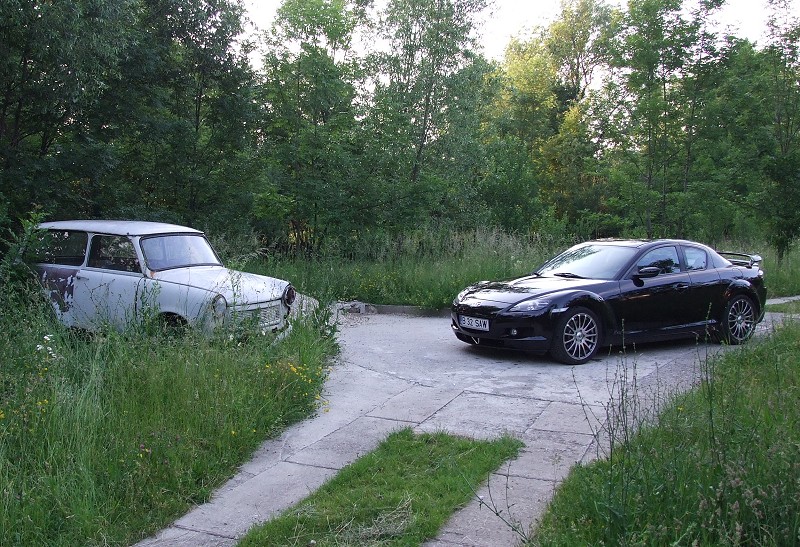 In fine mi-am montat eleronul la jumatate de an dupa ce mi-a venit din State. Asteptarea a meritat, a iesit ceva mai bine decat speram. S-a nimerit sa am si o iesire din oras acest week-end, asa ca micuta japoneza a avut parte de o sesiune de photo shooting. Impreuna cu prima mea masina, un Trabant 601 care nu va mai merge niciodata. Unchi-miu il pastreaza doar ca ii este drag si nu-i vine sa-l arunce.