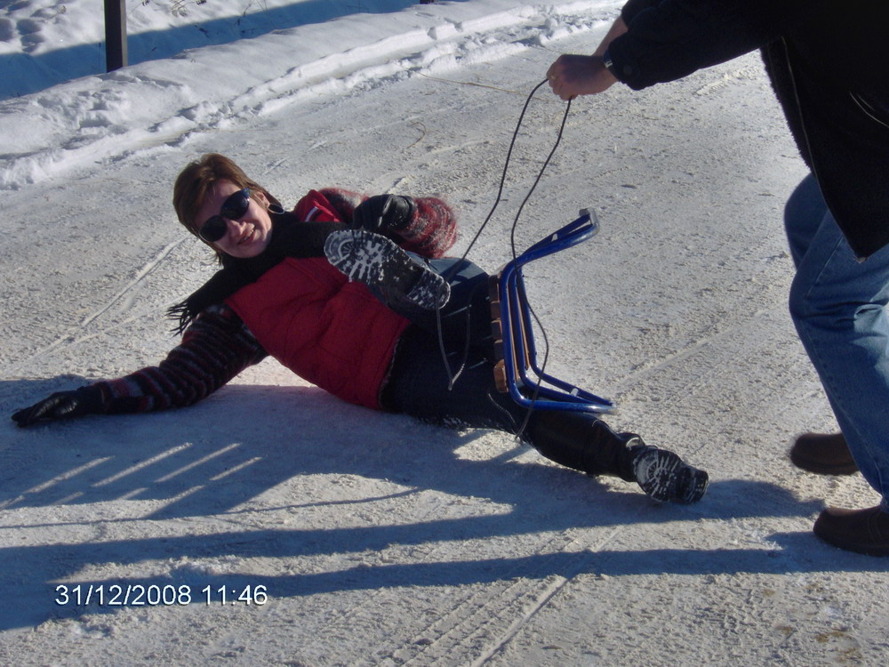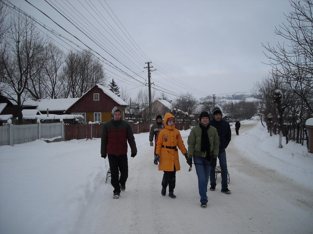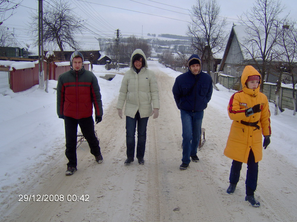 ziua I: o plimbare scurta cu sania prin sat, urmata de o mica bulgareala si de intalnirea (total surprinzatoare) cu Adispanu :D