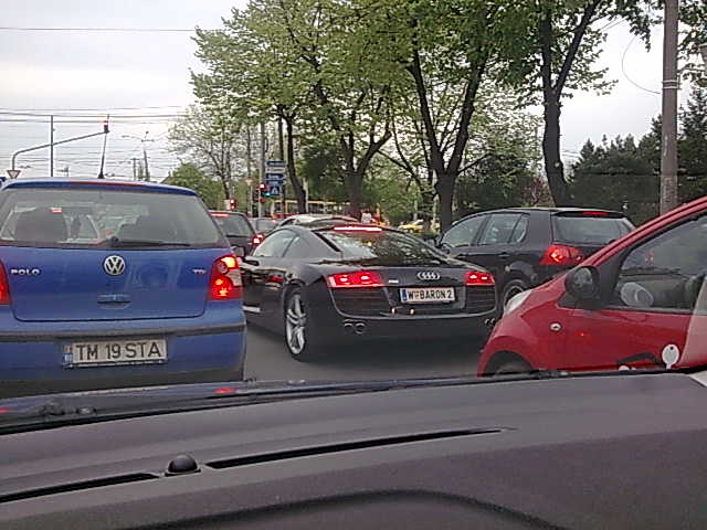 dap, am vazut pentru prima oara pe viu R8, numaru ii: W BARON 2, si mai are un S8 cu nr: W BARON 1, se pare ca e fan audi baiatu, sta in TM, in parcu mare din spate de la torontal pe acolo unde intoarce tramv 4