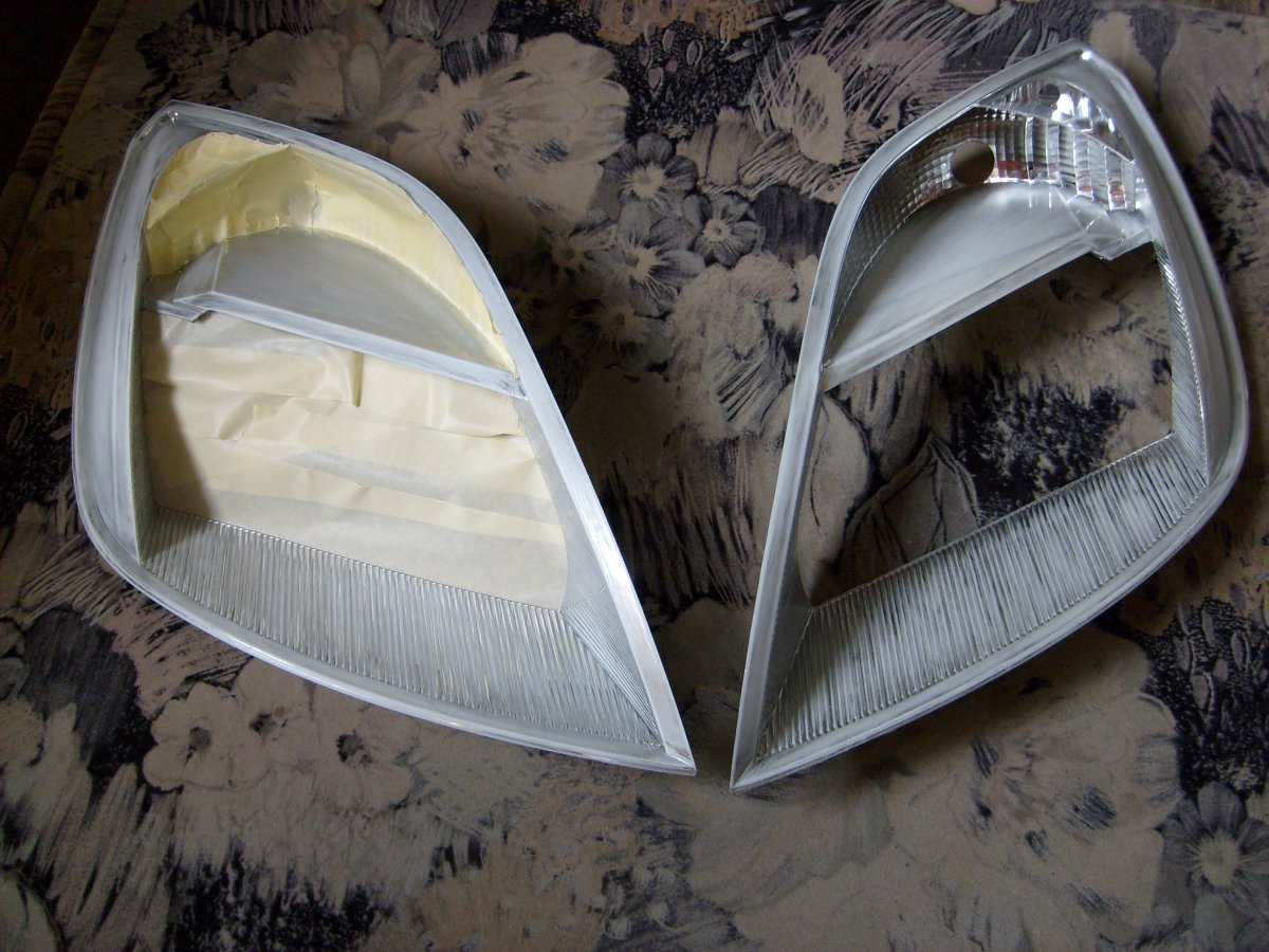 -nu aveti nevoie de hartie abraziva pt ca se sterge cu spirt cromul acela (din pacate am vrut sa curat o parte a farului pe care nu l-am vopsit si am observat ca se ia culoarea. din fericire este o portiune destul de mica exact sub bec si da impresia de reflexie a luminii)