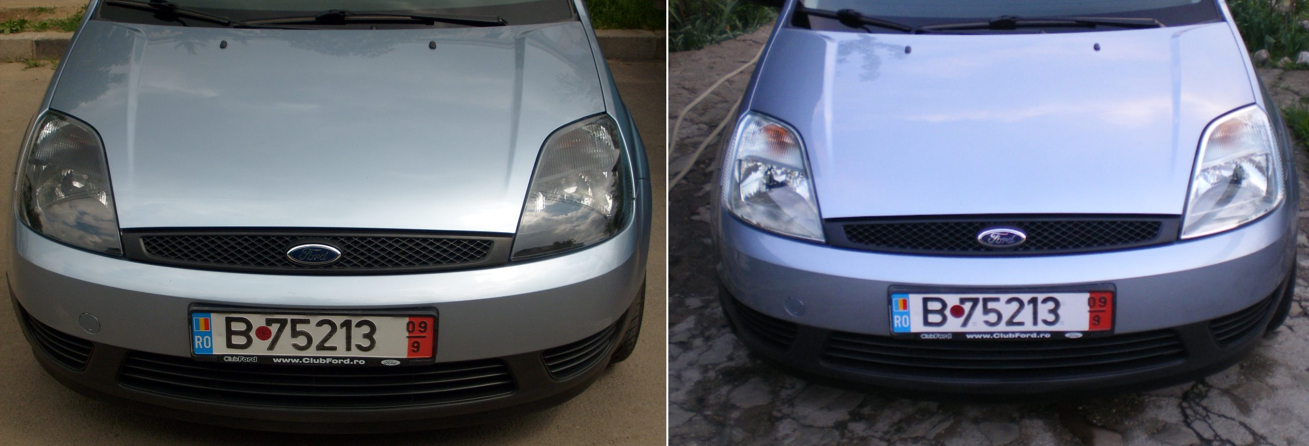 serios vorbind, culoarea e diferita deoarece pozele au fost facute in conditii diferite. cele cu farurile negre au fost facute azi in soare, si cele cu farurile cromate au fost facute la apus cand inca era putina lumina. drept urmare, expunerea a fost alta :)